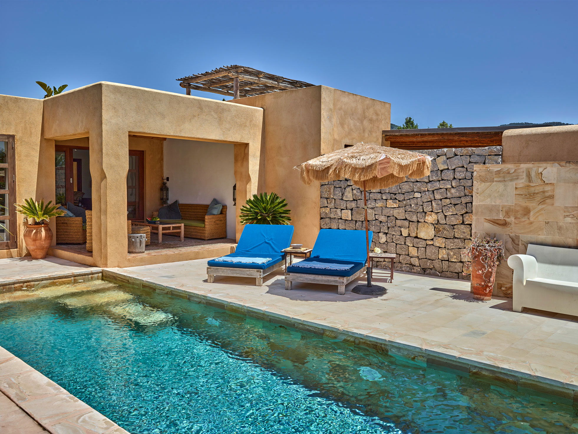 Kasbah Yuca is the smallest villa in the Kasbah villa collection, part of the Es Vedrà Bay Villas group. Intimate, peaceful, and private. Located in a privileged setting, renowned for its sublime sunsets over the Mediterranean Sea and the stunning view of the Es Vedrà islet.